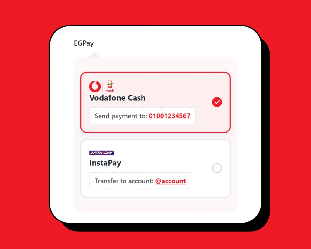 Enable local payment methods such as Vodafone Cash and InstaPay directly on the checkout page. Customers can easily choose their preferred payment method, reducing friction and increasing completed orders and conversions.