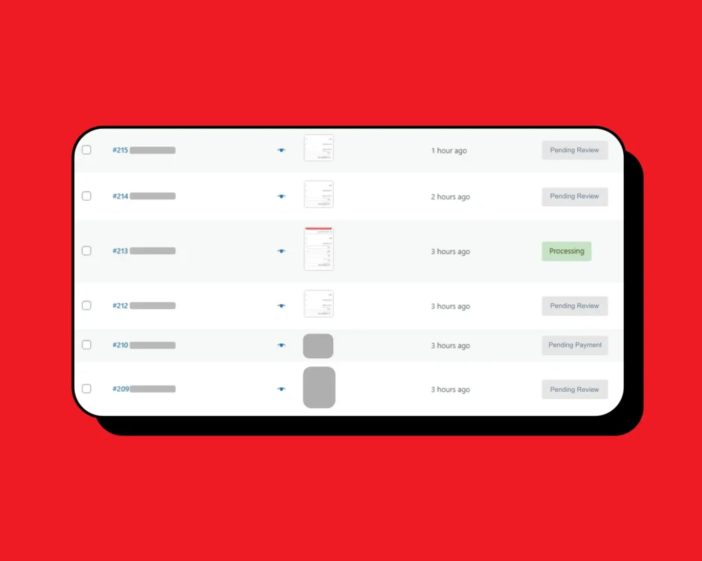 Access all uploaded receipts directly from your admin dashboard within the orders table. Review invoices, approve or reject payments, and track order status efficiently with a clear and organized workflow.